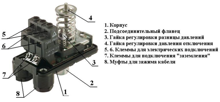 Реле давления всегда имеет специальный штуцер, с помощью которого подсоединяется к водопроводной трубе. Группы клемм используют для подключения электрических кабелей. Пружины, применяемые для создания усилия и срабатывания реле, В бытовых условиях чаще подразумевает возможность работы с заводскими настройками. В некоторых случаях потребуется регулировка параметров.