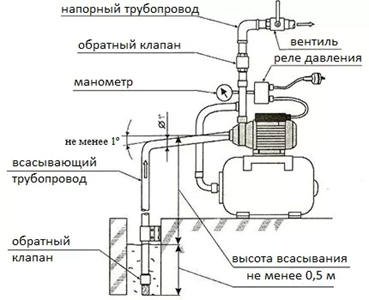 - расположение патрубка выше источника с водой. Из-за этого при работе насоса в систему попал воздух. Для устранения неполадки потребуется установить шланг правильно, чтобы он был неподвижным. Альтернативный способ предотвращения неполадки - установка поплавкового выключателя;
