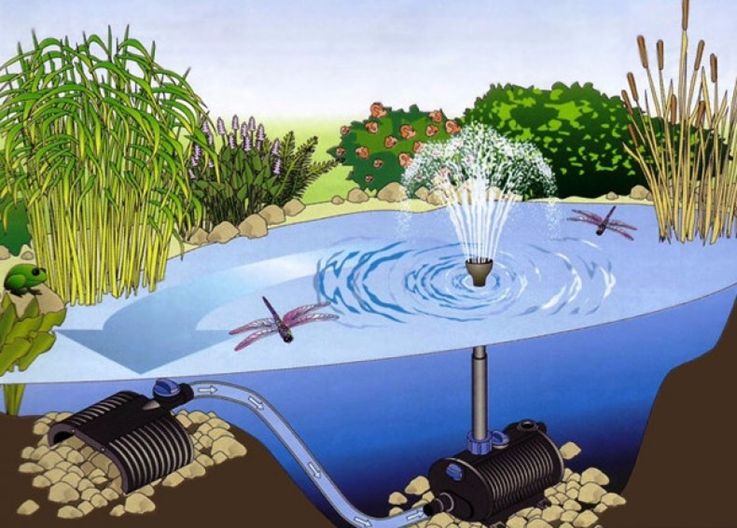 Для небольших фонтанов для установки на даче или частном дворе использование насоса будет оправданным. Для монтажа оборудования необходимо сделать подложку из подручных средств, на которой вы зафиксируете насос. Это могут быть кирпичи или же специальная подставка из пластика, высоту которой можно регулировать. После этого на подставку можно установить агрегат, который обеспечит переливы жидкости из источника. На дно пруда не советуют устанавливать насос. Это объясняется высокими рисками загрязнения. На дне содержится большое количество ила и песка, который может стать причиной поломки двигателя.