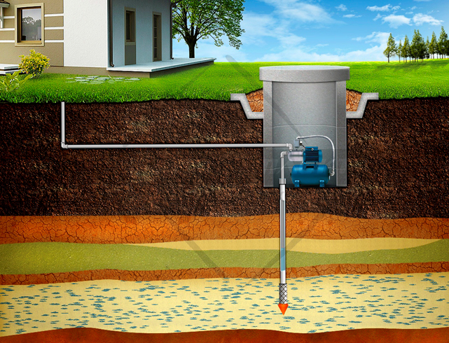 - возможность установки насоса в условиях ограниченного пространства. На территории частного дома можно расположить скважину даже в подвале;
