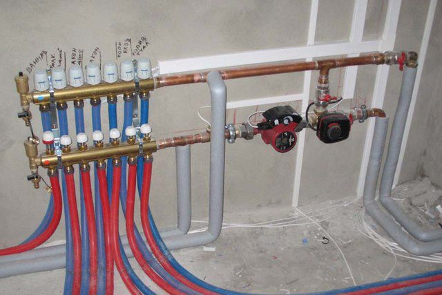 В теплых полах жидкость в системе чаще всего не будет горячей. Теплоноситель считается низкотемпературным. За счет этого нет особых ограничений по месту установки насоса в зависимости расстояния от котла. В многоэтажных строениях для каждого этажа советуют свой насос. В таком случае можно обеспечить равномерную и быструю циркуляцию жидкости.