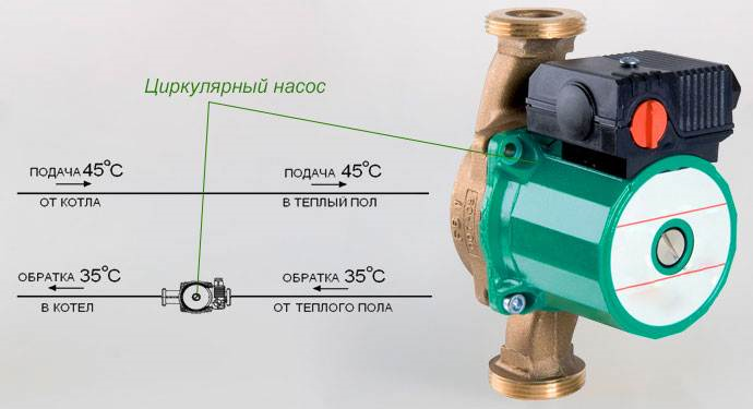 Если система теплого пола предусматривает наличие смесительного узла, насос монтируете после него. В таком случае вы сможете обеспечить подход оптимальной температуры к устройству. От правильного выбора установки насоса зависит дальнейшая его работа.
