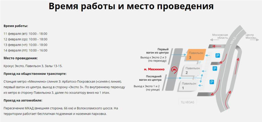 Уважаемые партнеры! ООО «РЕБАЙ» приглашает Вас посетить самую крупную в России и странах Восточной Европы выставку оборудования для отопления и водоснабжения Aquatherm Moscow 2020. Выставка состоится с 11 по 14 февраля в Москве, в МВЦ «Крокус Экспо», номер стенда С4051, зал 15, павильон 3. Для бесплатного посещения получите электронный билет, используя промокод. ![]() Расположение и схема подъезда на выставку: ![]()